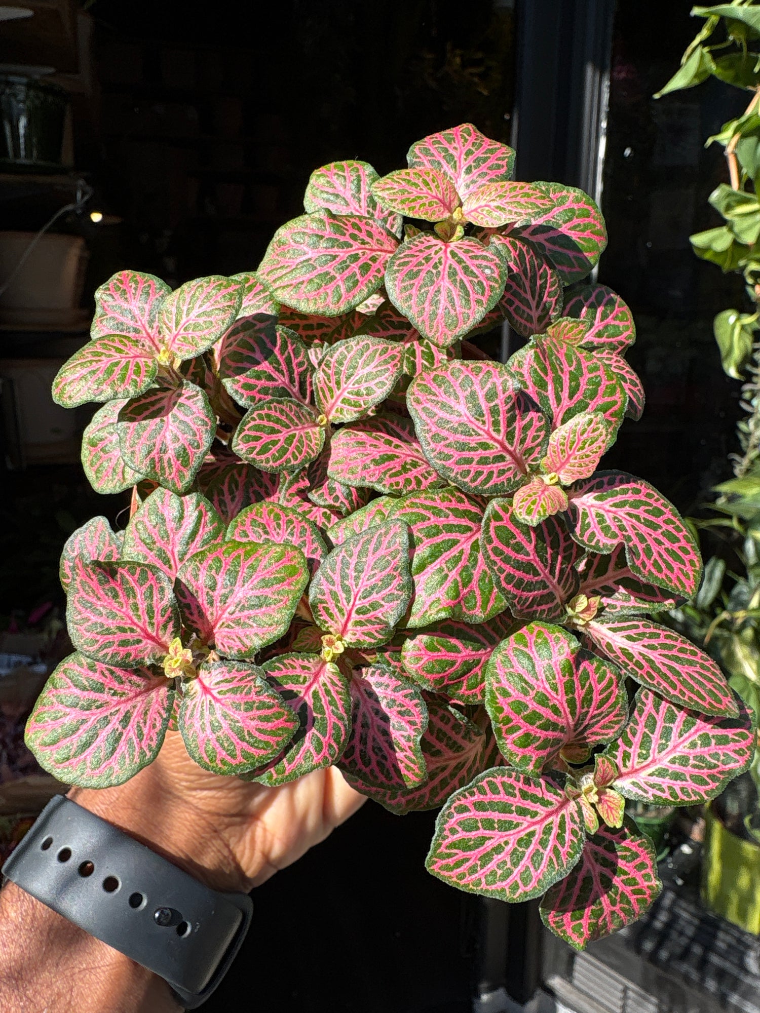 Water: This plant loves consistently moist soil, but not soggy conditions. Water it when the top of the soil feels just slightly dry, and mist it occasionally to maintain humidity. Fittonias don’t like to dry out completely—if they do, they may wilt, but they usually bounce back quickly with a good drink.