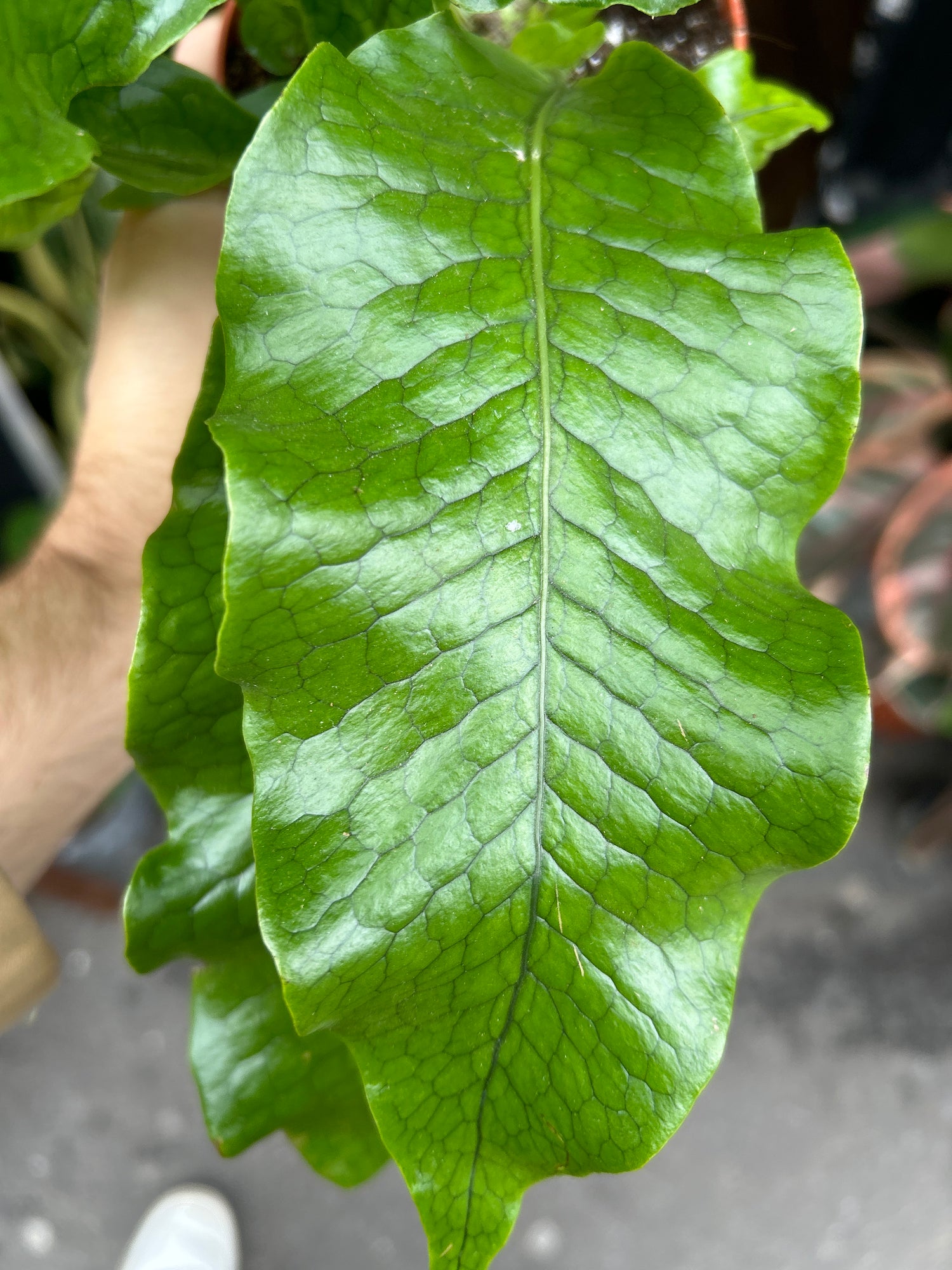 The Microsorum Crocodyllus is a stunner and a great low maintenance plant. It has long, strap-like leaves with a crocodile skin pattern on top.