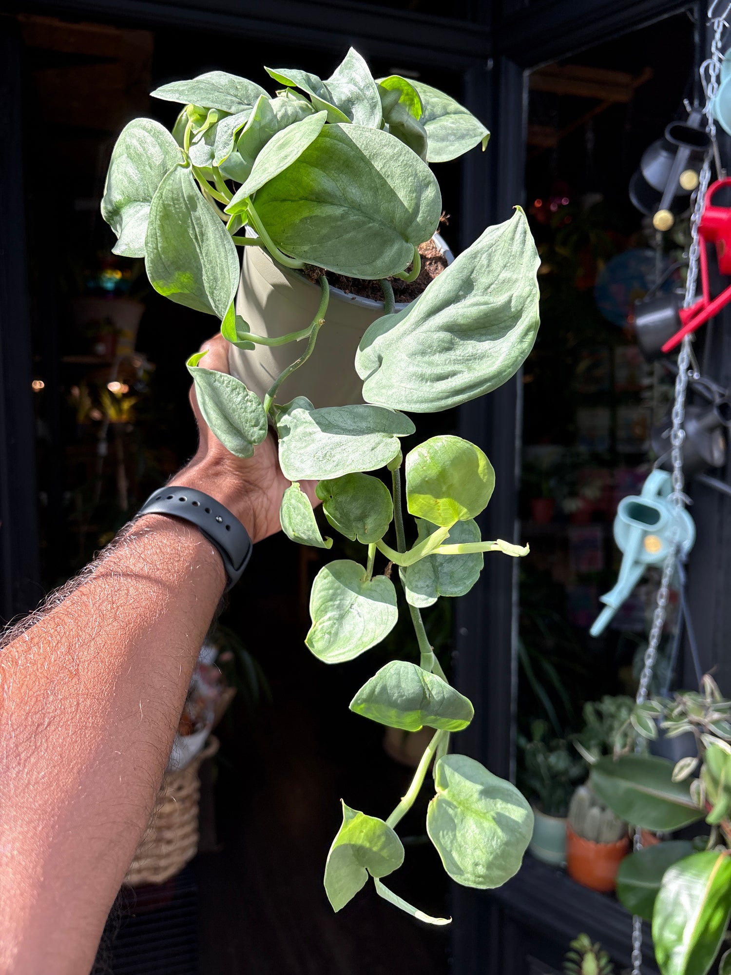 The dark green leaves streaked with bold silver variegation make the Scindapsus Silver Hero a standout in any home. It is easy to care for and very resilient.