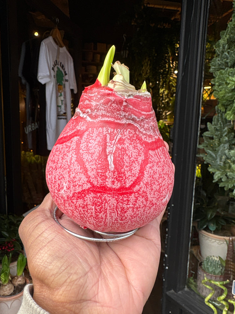 This Amaryllis bulb does not need any water to grow. It is covered and protected with wax to keep the moisture inside and allow the bulb to sprout and bloom by itself with no care needed at all - Energy and water are already inside the bulb.