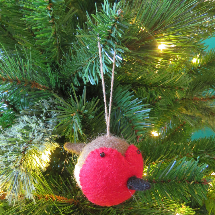 What a sweetheart! This chirpy chap is bound to brighten up any festive display, with his adorable love heart shaped, red plumage and gorgeous hand stitched expression. Lovingly hand crafted using traditional needle and wet felting techniques under fair trade working conditions. Dimensions 6cm x 6cm Materials Wool Handmade Needle Felt Sweetheart Robin Hanging Christmas Tree Decoration