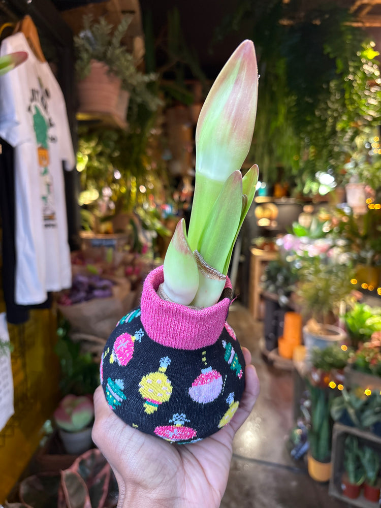 This Amaryllis bulb does not need any water to grow. It is covered and protected with wax to keep the moisture inside and allow the bulb to sprout and bloom by itself with no care needed at all - Energy and water are already inside the bulb.