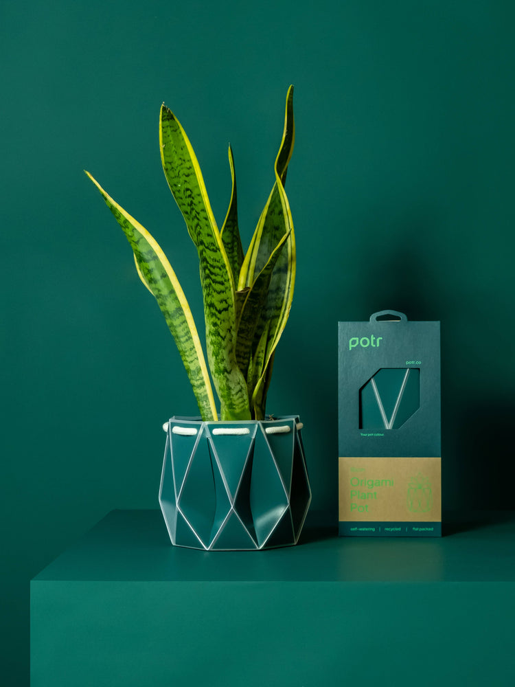 POTR pots are flat pack, origami planters designed to self-water your plants, made from recycled materials.