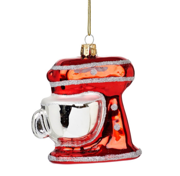 Nothing says Christmas like a fresh and festive dessert. This retro-inspired hanging decoration is a charming addition for those who cannot get enough of baking! Featuring a food mixer design, this bauble is adorned with festive red and a sprinkle of glitter.