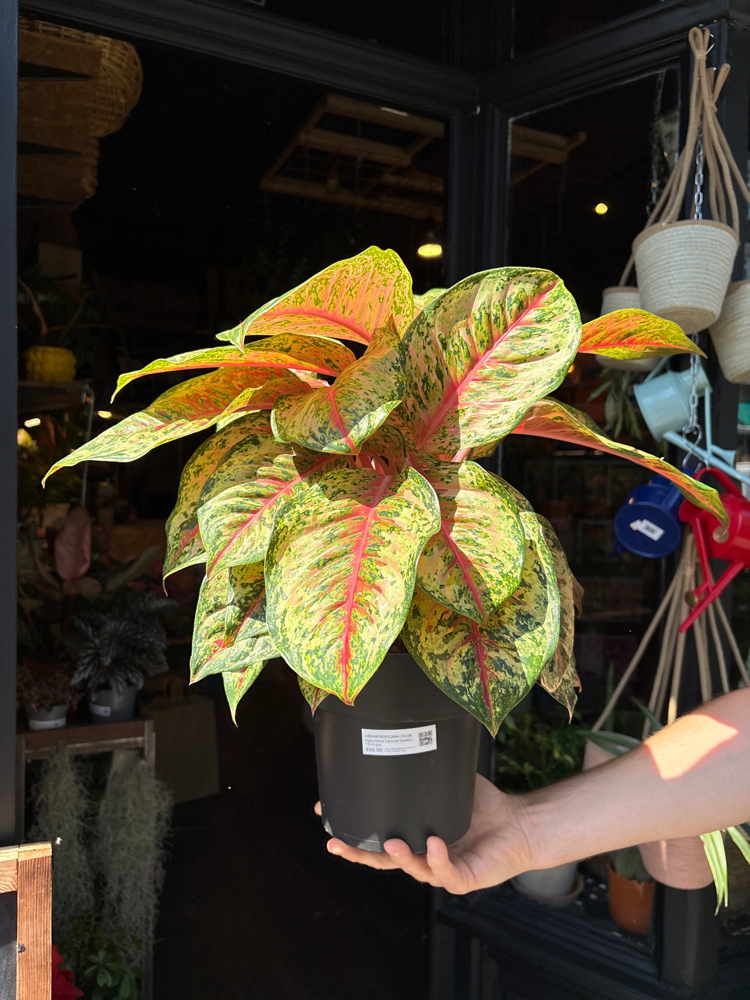The Aglaonema 'Carnival Queen' is a striking houseplant with lush, variegated foliage featuring splashes of pink, red, and cream over deep green leaves. Bold and vibrant, this plant adds an instant pop of color to any indoor space while being low-maintenance and forgiving of occasional neglect.