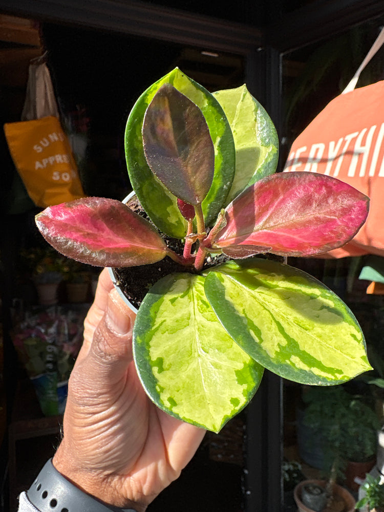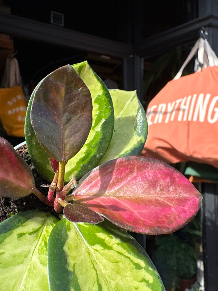Light: Hoya australis ‘Lisa Tricolor’ thrives in bright, indirect light, which helps maintain its vibrant variegation. It can tolerate some gentle direct morning or late afternoon sun, but avoid strong midday sunlight which may scorch the leaves.