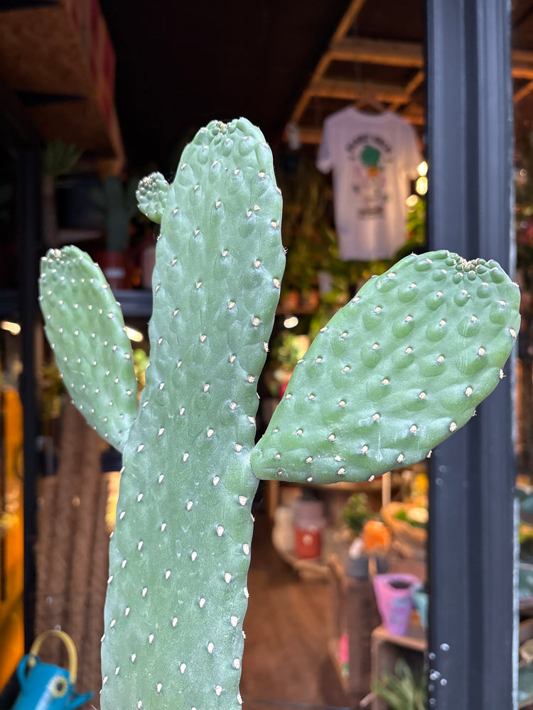 Also known as the prickly pear cactus - robust cactus with round wide flat leaves covered in prickles